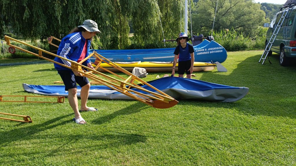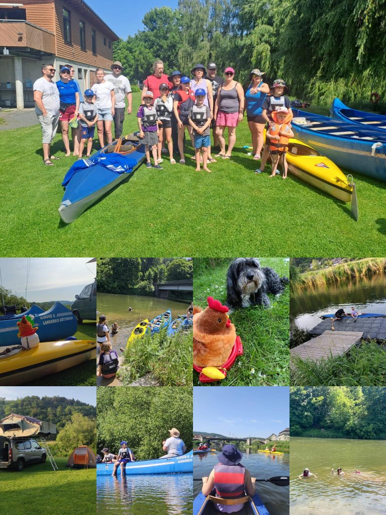 Nach langer Zeit mit neuem Engagement gab es eine Wanderfahrt auf der Werra. Start war Freitag Abend am Witzenhäuser Kanuclub mit Zelt- und Faltbootaufbau und anschließendem gemeinsamen Abendessen. Am Samstag nach einem ausgedehnten Frühstück bei sehr warmen Temperaturen und strahlendem Sonnenschein starteten dann die kleinen und großen Teilnehmer in ihren Booten und machten sich auf den Weg nach Hann. Münden. Unterwegs wurde mehrfach gebadet, denn Abkühlung und Spaß mußten sein. Mehrere Schleusen wurden passiert und das letzte Stück auf der Fulda flußaufwärts zum Mündener Kanuclub war wegen der Strömung im Abschnitt unter der Pionierbrücke nochmal ein hartes Stück Arbeit. Mit leichter Verspätung von nur 2 Stunden gegenüber der geplanten Ankunftszeit sind dann alle glücklich am Kanuclub eingetroffen. Zum Abschluss wurde am Club noch gegrillt und daraus wurde noch ein schöner Abend.