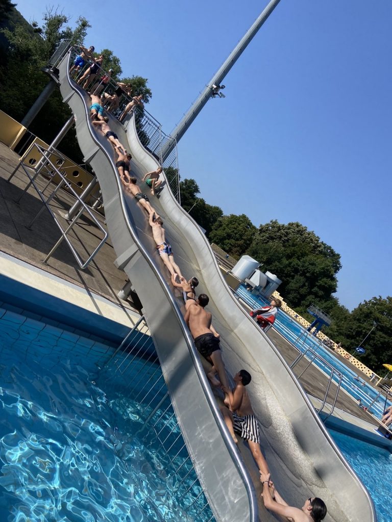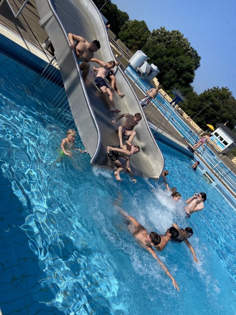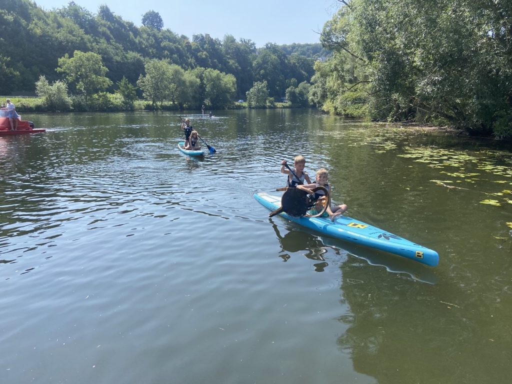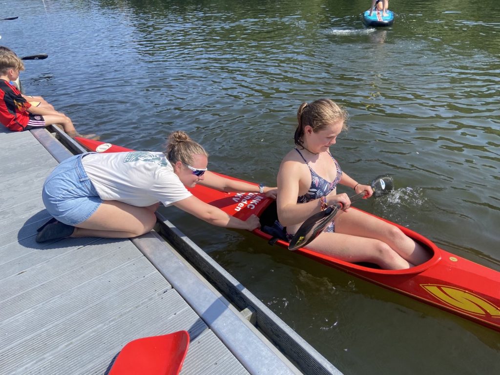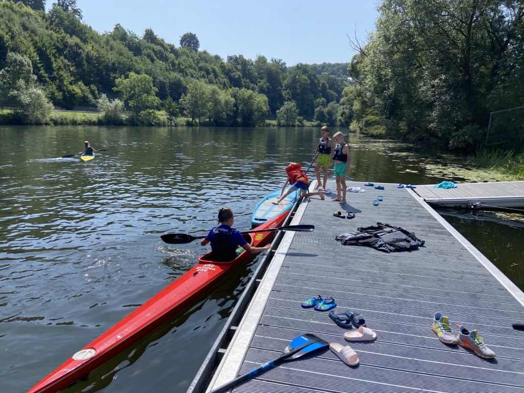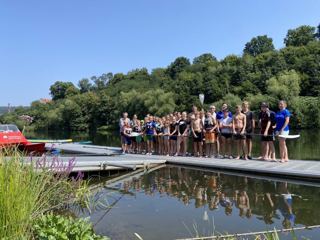 Am letzten Ferientag trafen sich 22 Kanuten und 12 Ruderer zunächst im Hochbad, um viel Spaß beim Schwimmen zu haben. Danach ging es dann in den Ruderclub. Einige Kanuten holten die Kanus und SUP-Boards vom Kanuclub und brachten diese über die Fulda zum Ruderclub. Dort wurde dann fleißig ausprobiert, getestet was die jeweils andere Sportart so ausmacht. Natürlich wurde auch gekentert und freiwillig ins Wasser gesprungen.